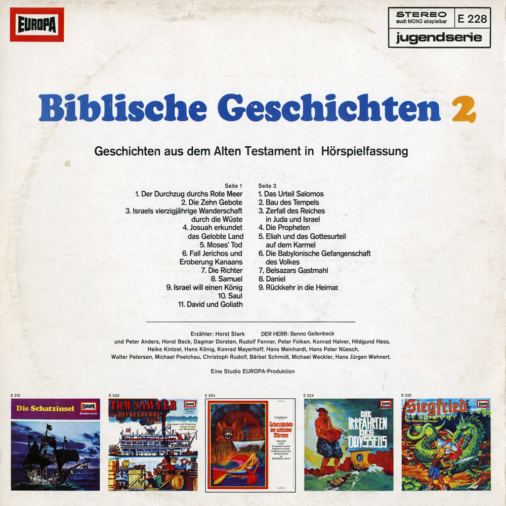 Entgegen der üblichen EUROPA-Praxis findet sich auf der Cover-Rückseite keine Zuordnung Rolle - Sprecher, sondern lediglich eine Aufzählung der Mitwirkenden, welche allerdings sowohl unvollständig ist als auch Schauspieler nennt, die nicht beteiligt sind.