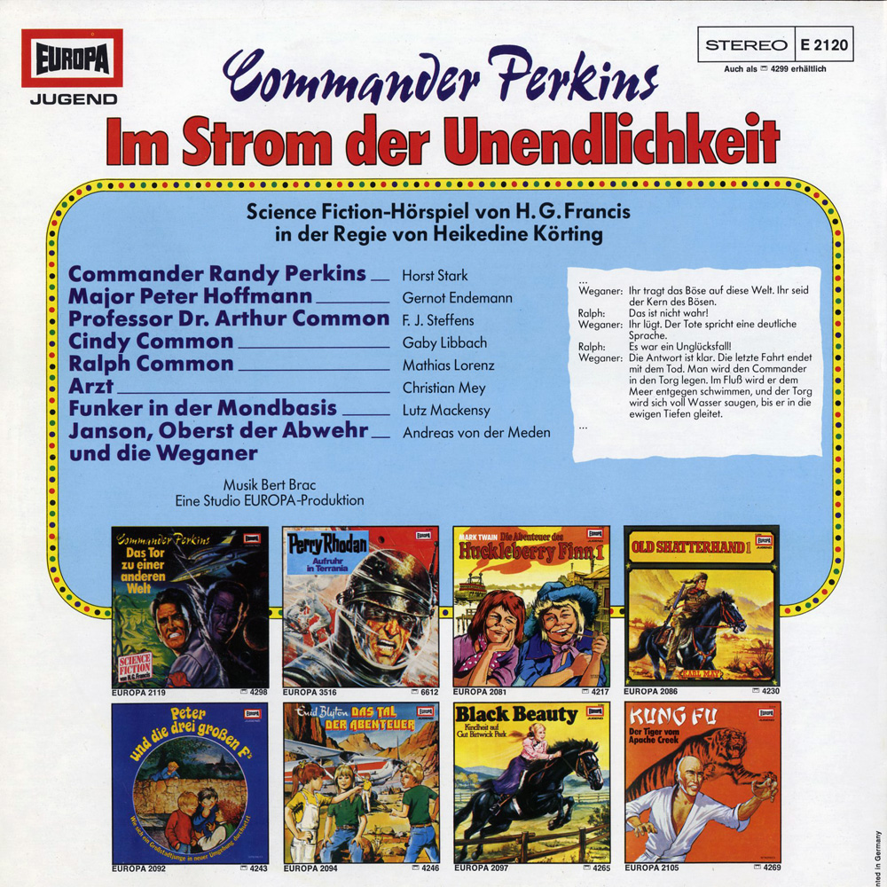 Weganer: Ihr tragt das Böse auf diese Welt. Ihr seid der Kern des Bösen. Ralph: Das ist nicht wahr! Weganer: Ihr lügt. Der Tote spricht eine deutliche Sprache. Ralph: Es war ein Unglücksfall! Weganer: Die Antwort ist klar. Die letzte Fahrt endet mit dem Tod. Man wird den Commander in den Torg legen. Im Fluß wird er dem Meer entgegen schwimmen, und der Torg wird sich voll Wasser saugen, bis er in die ewigen Tiefen gleitet.