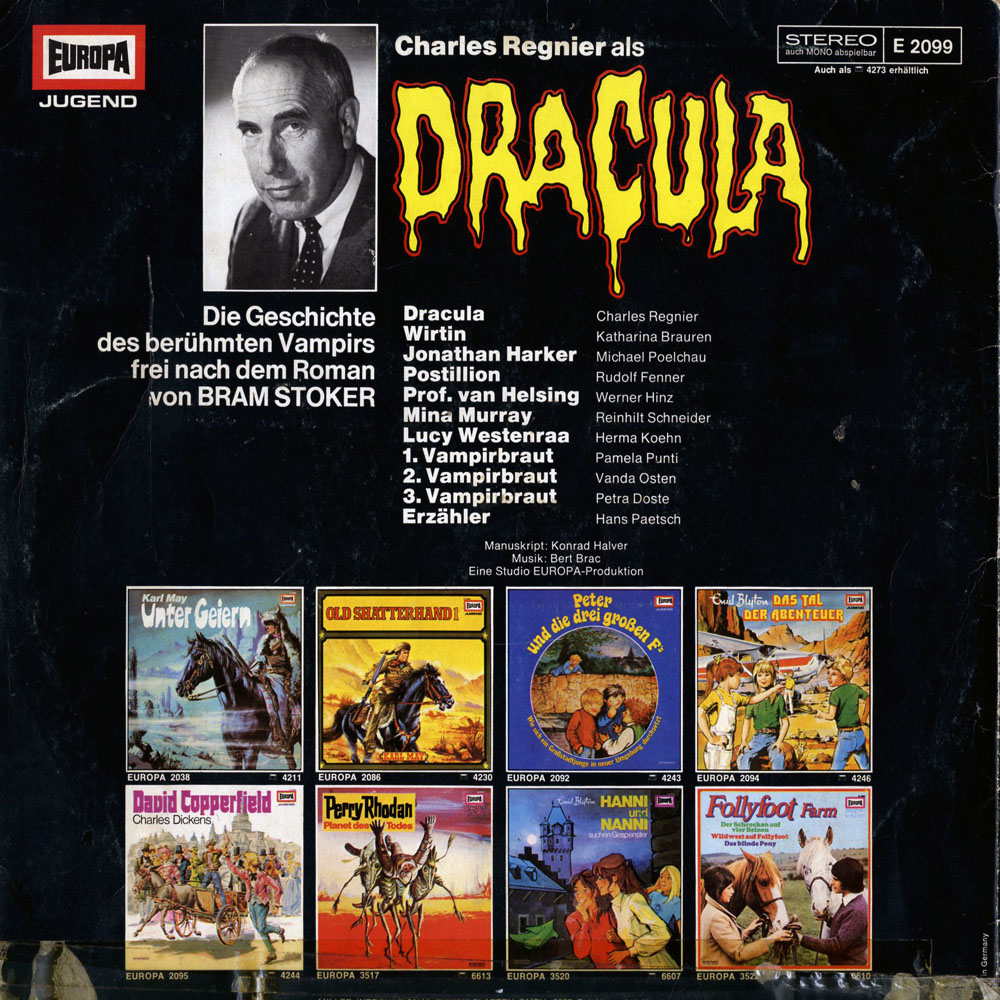 " . . . wann begiebt er sich wieder fort aus Transsylvanien? Niemand weiß es. Seien wir auf der Hut . . ." Wegen dieser kleinen aber nicht unwesentlichen Änderung des Endes, gesprochen von Hans Paetsch, hatte ich jahrelang die Hosen gestrichen voll! In den ersten Tagen nach dem ersten Hören gab es kaum eine Nacht, in der ich nicht unters Bett geschaut habe, ob da nicht ein blutdürstiger Vampir sitzt. Mein Bärchen musste seither immer auf meinem Hals sitzen und meinen Schlaf bewachen. Wer kann diese Trauma toppen?