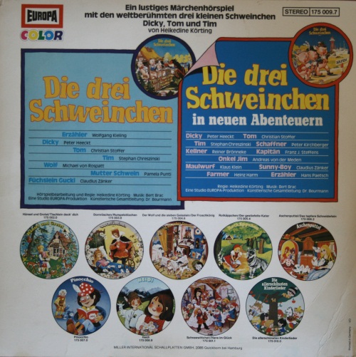 Seite 1: Die drei kleinen Schweinchen verlassen ihre Mutter und bauen sich jeder ein Haus. Eines aus Stroh, eines aus Holz und ein Backsteinhäuschen. Da kommt der Wolf und pustet die Häuser kaputt. Nur das Backsteinhäuschen hält.