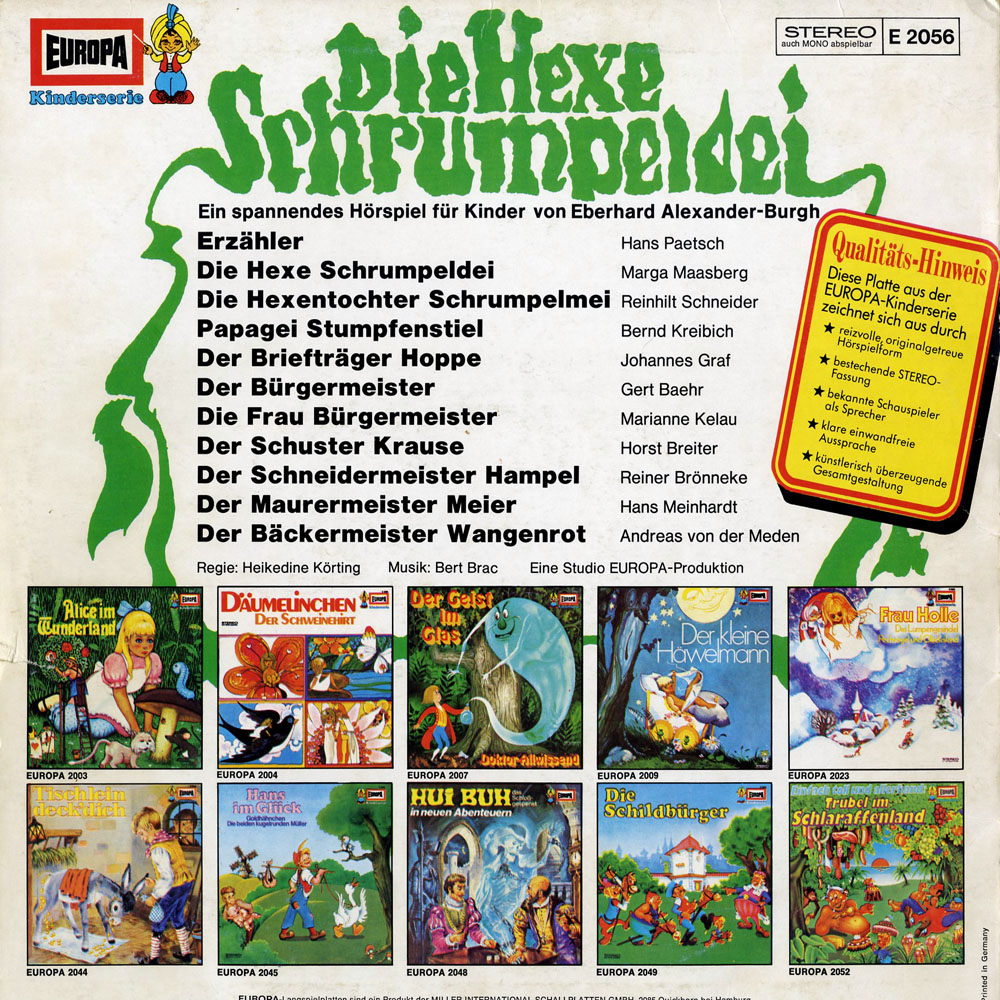 Die Platte habe ich mir als Kind ausgesucht, weil ich was Gruseliges wollte und die Zickzackschrift auf dem Cover das eben andeutete - das Hörspiel selber war alles andere als gruselig, sondern einfach nur lieb und und nett kindgerecht. Trotdem hat es mir so gefallen, dass ich mir alle LPs bis Folge 12 oder 13 gewünscht und auch bekommen habe.