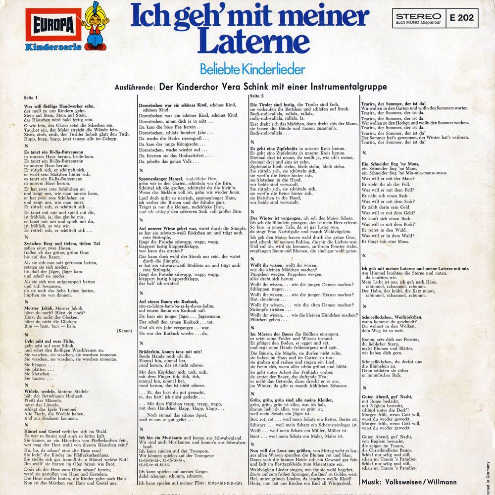 Die LP "Ich geh' mit meiner Laterne" erschien zunächst unter dem Titel "Kinderlieder".