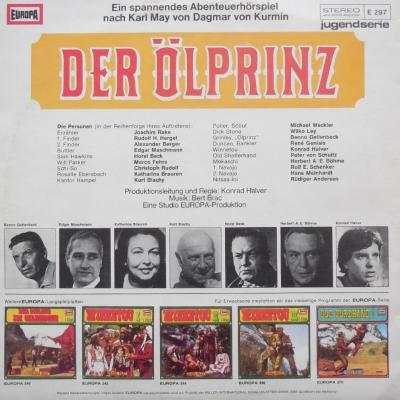 Heute Eure Seite entdeckt - grandiose Idee. Ich sammle Vinyl und "Ölprinz" war eine meiner ersten Platten. Ich hab sie deshalb sehr gern, klar. Aber auch heute mit kritischeren Ohren als damals, ich denke, bei allem Weglassen gibt die Scheibe doch einen guten Überblick über das Buch ab. Am Ende, ja, da wird sehr viel durchgesprochen vom Erzähler, und klar ist das schade, dass es der Rake, nicht Hans Paetsch ist. Peter von Schultz als Old Shatterhand find ich aber noch krasser und vermisse da den Michael Poelchau. Und trotzdem - ich bin sehr zufrieden. Allein Halver ist die Platte wert und Horst Beck ist Extraklasse, oder nicht?
