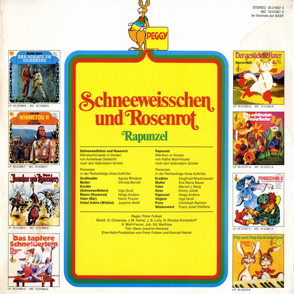 Das sind wieder zwei frei bearbeitete Märchen, wie sie von diesem Label schon mehrfach angeboten worden sind. "Schneeweißchen und Rosenrot" wurde in eine Rahmenhandlung verpackt: Zwei Mädchen spielen das Märchen mit ihrem Onkel als Puppenspiel. "Rapunzel" ist soweit ich mich noch erinere - in Verse gepackt worden. Das ganze natürlich mit namhaften Schauspielern besetzt (s. o.).