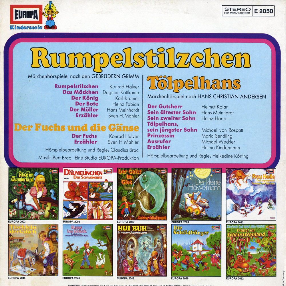 Hörspielbearbeitung von Claudius Brac [Rumpelstilzchen / Der Fuchs und die Gänse] und Heikedine Körting [Tölpelhans]