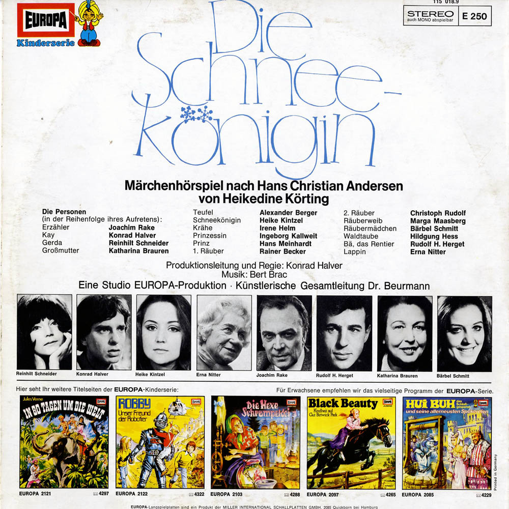 Die Philips-Version der Schneekönigin ist auch bei der Deutschen Grammophon erschienen. Ich persönlich finde die Philips-Version nicht so toll. Ich habe sämtliche Hörspiel-Versionen der Schneekönigin in meiner Sammlung. Meine Lieblingsversion ist die von Europa, wahrscheinlich auch, weil ich mit dieser Version aufgewachensen bin. Ansonsten gefällt mir auch die ostdeutsche Litera-Version, die ich erst als Erwachsene kennenlernen durfte, sehr gut. Die WDR-Version finde ich am schlechtestens, obwohl andere auch diese hoch loben. Geschmäcker sind eben verschieden.