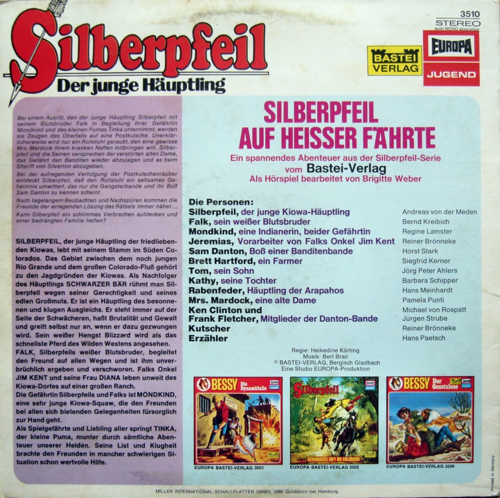 SILBERPFEIL, der junge Häuptling der friedliebenden Kiowas, lebt mit seinem Stamm im Süden Colorados. Das Gebiet zwischen dem noch jungen Rio Grande und dem großen Colorado-Fluß gehört zu den Jagdgründen der Kiowas. Als Nachfolger des Häuptlings SCHWARZER BÄR rühmt man Silberpfeil wegen seiner Gerechtigkeit und seines edlen Großmuts. Er ist ein Häuptling des besonnenen und klugen Ausgleichs. Er steht immer auf der Seite der Schwächeren, haßt Brutalität und Gewalt und greift selbst nur an, wenn er dazu gezwungen wird. Sein weißer Hengst Blizzard wird als das schnellste Pferd des Wilden Westens angesehen.