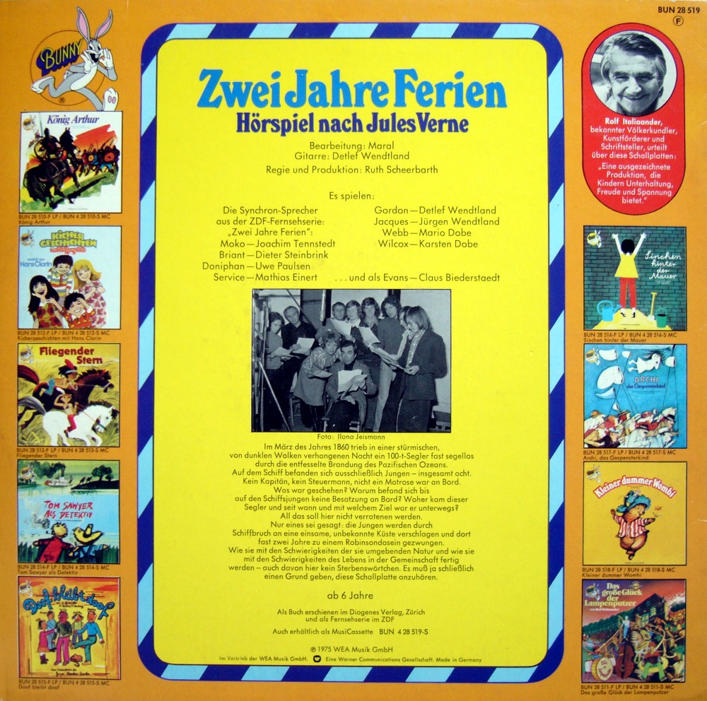 Im März des Jahres 1860 trieb in einer stürmischen, von dunklen Wolken verhangenen Nacht ein 100-t-Segler fast segellos durch die entfesselte Brandung des pazifischen Ozeans. Auf dem Schiff befanden sich ausschließlich Jungen - insgesamt acht. Kein Kapitän, kein Steuermann, nicht ein Matrose war an Bord. Was war geschehen? Warum befand sich bis auf den Schiffsjungen keine Besatzung an Bord? Woher kam dieser Segler und seit wann und mit welchem Ziel war er unterwegs? All das soll hier nicht verraten werden. Nur eines sei gesagt: die Jungen werden durch Schiffbruch an eine einsame, unbekannte Küste verschlagen und dort fast zwei Jahre zu einem Robinsondasein gezwungen. Wie sie mit den Schwierigkeitender sie umgebenden Natur und wie sie mit den Schwierigkeiten des Lebens in der Gemeinschaft fertig werden - auch davon hier kein Sterbenswörtchen. Es muß ja schließlich einen Grund geben, die Schallplatte anzuhören.