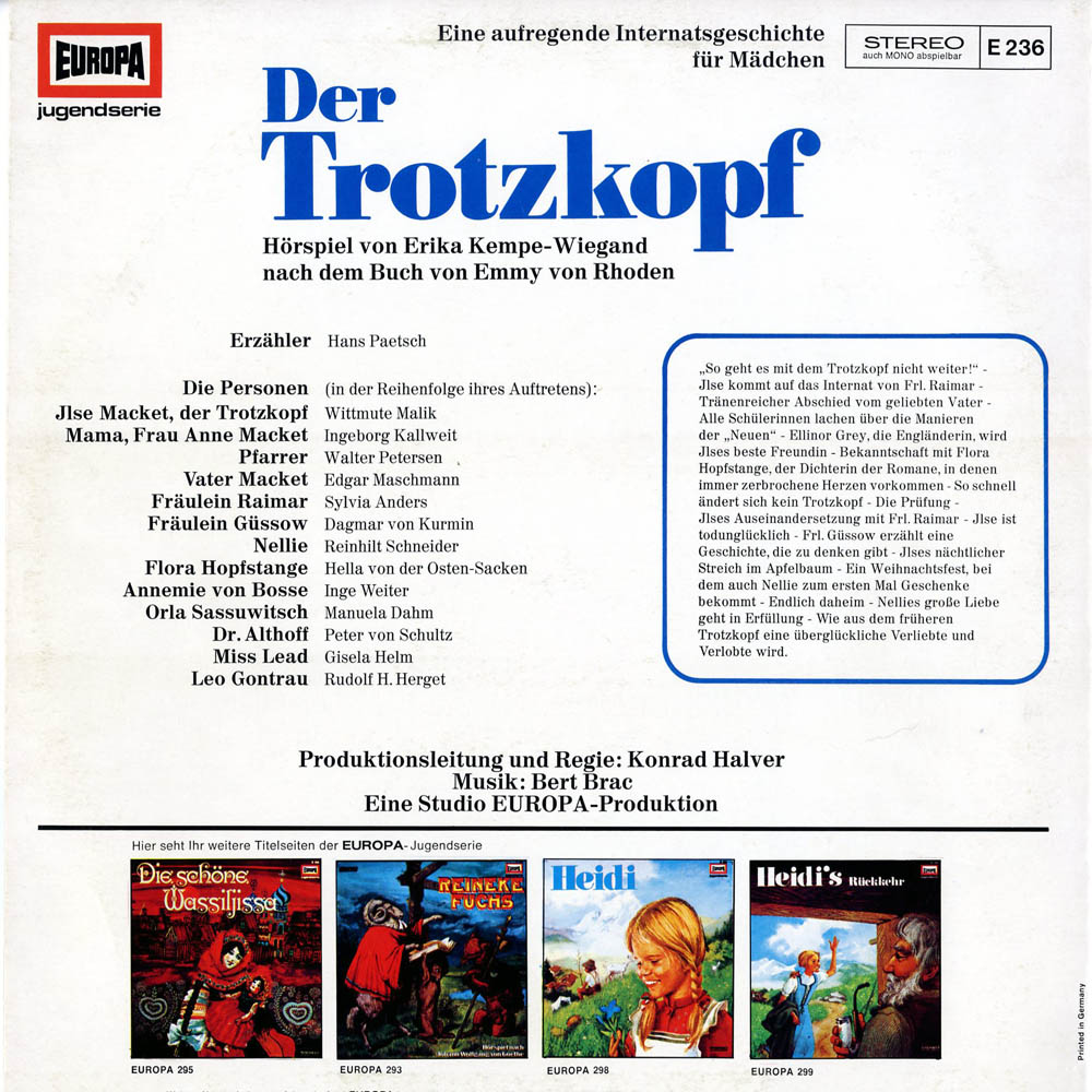 "So geht es mit dem Trotzkopf nicht weiter!" – Ilse kommt auf das Internat von Frl. Raimar – Tränenreicher Abschied vom geliebten Vater – Alle Schülerinnen lachen über die Manieren der "Neuen" – Ellinor Grey, die Engländerin, wird Ilses beste Freundin – Bekanntschaft mit Flora Hopfstange, der Dichterin der Romane, in denen immer zerbrochene Herzen vorkommen – So schnell ändert sich kein Trotzkopf – Die Prüfung – Ilses Auseinandersetzung mit Frl. Raimar – Ilse ist todunglücklich – Frl. Güssow erzählt eine Geschichte, die zu denken gibt – Ilses nächtlicher Streich im Apfelbaum – Ein Weihnachtsfest, bei dem auch Nellie zum ersten Mal Geschenke bekommt – Endlich daheim – Nellies große Liebe geht in Erfüllung – Wie aus dem früheren Trotzkopf eine überglückliche Verliebte und Verlobte wird