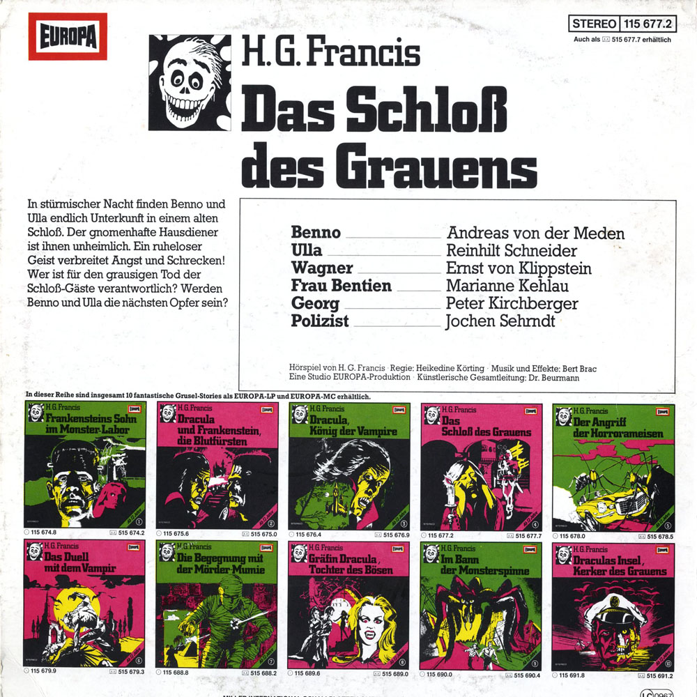 Ich kann mich gut daran erinnern als ich im Herbst 1976 die Kassette bekommen habe.Meine Mutter brachte sie mit als sie Einkaufen war.Als ich die Kassette in der Einkaufstüte sah,griff ich sofort hinein und rannte damit auf mein Zimmer.Ich legte die Kassette sofort in mein Kassettenplayer und begann gespannt zu lauschen.Ich war damals 8 Jahre und war von diesem Hörspiel so begeistert daß ich mir es nicht wagte dieses Hörspiel im dunkel anzuhören.Ich höret mir dieses Hörspiel an diesen Tag 2 mal an,einmal Tags und einmal Nachts(natürlich mit Licht und Fernseher an).Dieses Hörspiel kam 1981 nochmal von EUROPA raus in der Gruselserie,Nummer 4 mit neuen Zwischenmusik aber irgendwie finde ich die alte Fassung von 1976 besser.Meine Freunde und ich haben mal versucht in einem dunklen Zimmer dieses Hörspiel anzuhören.Meine Güte,da kam aber der Effekt der Angst heraus.Ich musste aus dem Zimmer raus weil der Gruseleffekt damals zu groß war.