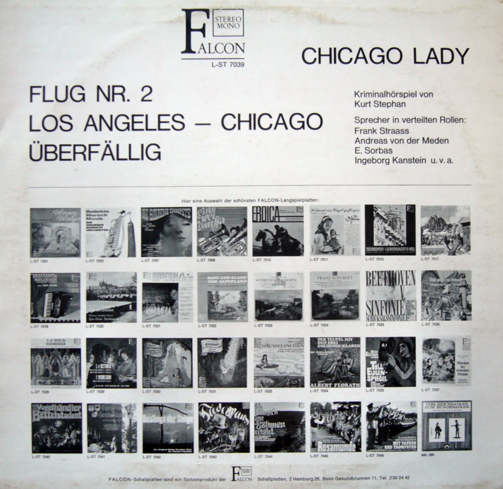Die beiden Stories der Platte sind hingegen gar dürftige Hörspielchen. "Chicago Lady" ergibt gar keinen Sinn; "Flug Nr. 2" erinnert stark an ein wirkliches Verbrechen, das in Kanada Anfang der 1950er Jahre geschah; inwieweit es geschmackvoll ist, das für die Schallplatte nachzuzeichnen, ist doch fraglich - zumal sich die Lösung dann gar zu schnell einstellt, um "Spannung" machen zu können. Außerdem ist die Doppelbesetzung von Frank Straass in diesem Stück unglücklich: D i e Stimme ist nun wirklich sofort zu erkennen!
