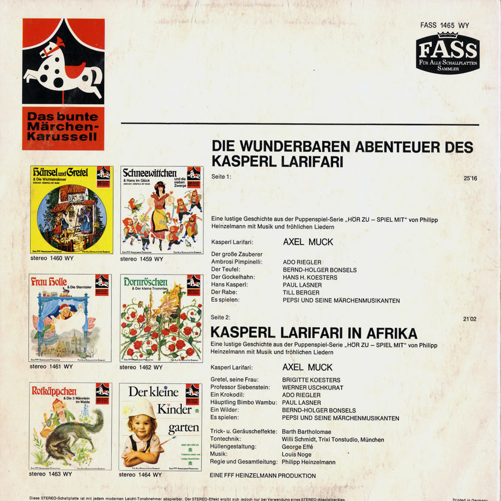 ICh hatte auch die platte von larifari, winfach weltklasse auch die anderen platten von märchenkarusell hatte ich . kann mir einer sagen ob es das vielleicht auf cd oder evt. kassette noch gibt wäre sehr dankbar für jeden tip.