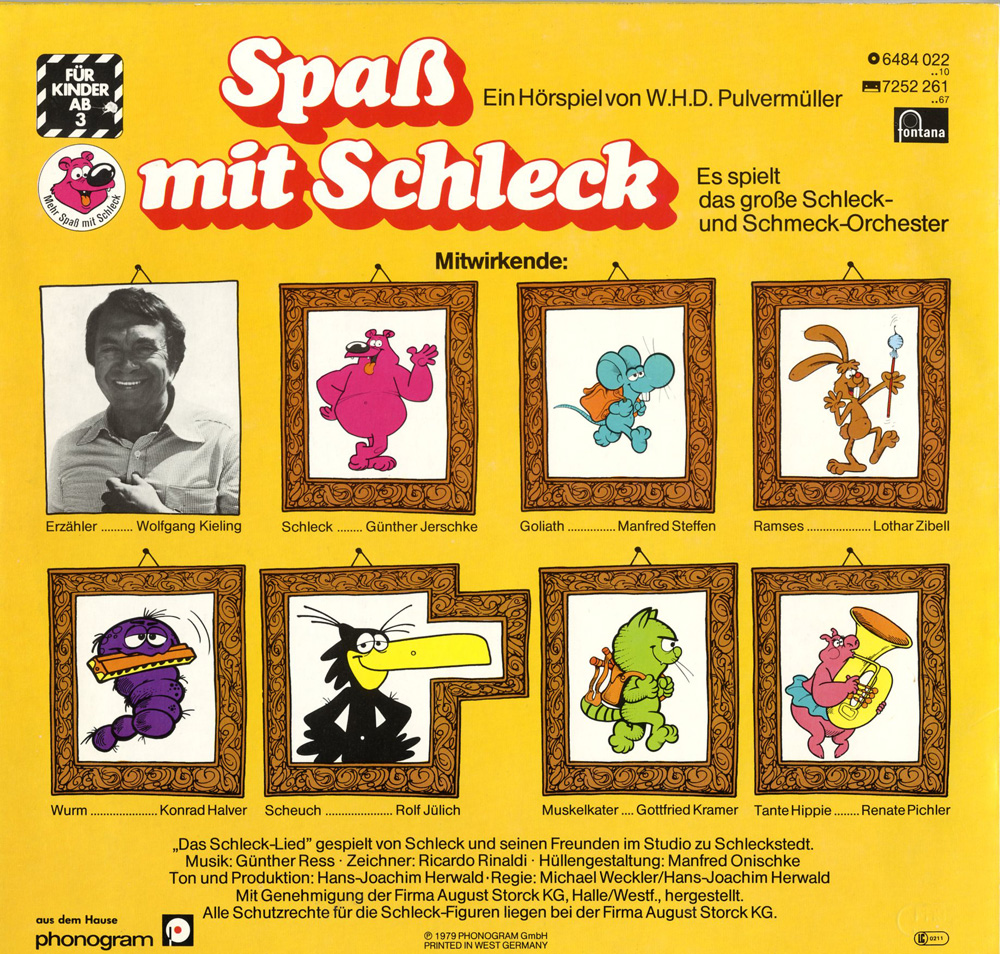 Gutes Hörspiel nach den Werbefiguren des Schleck-Universums (Riesen, Schleck-Lollies usw.).