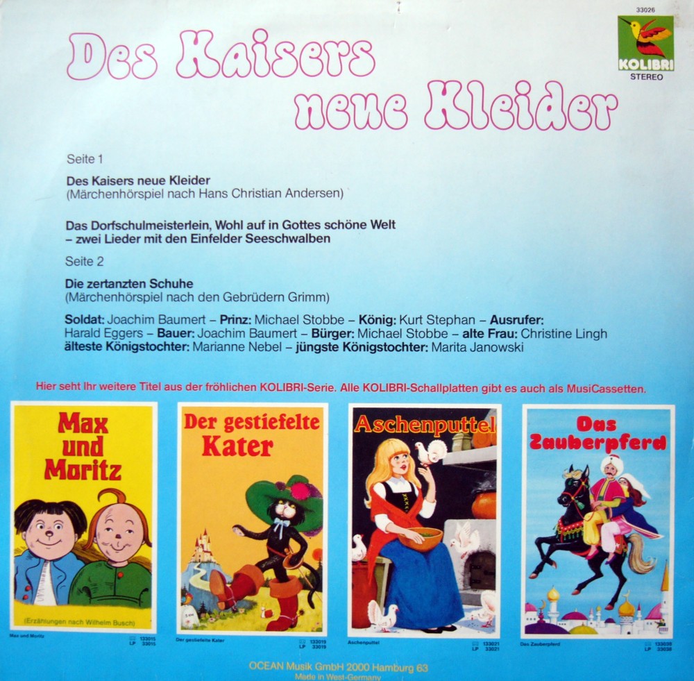 Die Sprecher des Märchens "Des Kaisers neue Kleider" werden nicht aufgeführt.