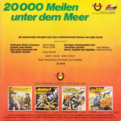 Eins der schönsten Abenteuer Hoerspiele und immer noch die beste Geschichte von Jules Verne. Die Covergestaltung im schönen grün paßt auch gut zum Aquarium.