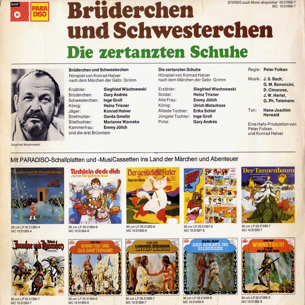 ...Was mach mein Kind, was macht mein Reh... Meine absolute Lieblingsplatte aus Kindertagen und ich werde es nie müde werden, diesem Meisterwek zuzuhören! ('Brüderchen und Schwesterchen' als auch die B-Seite:'Die zertanzten Schuhe') Siegfried Wischnewski als Erzähler und Inge Groll als Schwesterchen/Jüngste Tochter sind fabelhaft. Auch in der Rolle des Brüderchens wird Herr Halver (Europa-Fassung) von Gary Andrés weit übertroffen. Seit Jahren sammle ich fleißig die alten Platten, die ich mir schon in der Kindheit immer gewünscht habe, doch diese Platte steht mit Abstand ganz vorne (gleich nach der 'Gänsehirtin am Brunnen' - auf der Rückseite von 'Der Wolf und die sieben Geißlein' von Europa