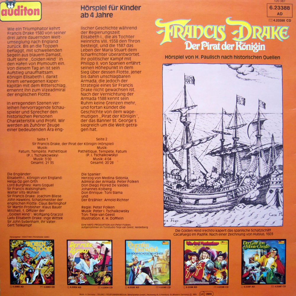 Auch wenn ich langsam langweilig werde: Peter Folken ist ein Genie gewesen literarische oder historische Stoffe umzusetzen. Man erfährt als kind oder Jugendlicher spielend, wer Königin Elisabeth war, wer Maria Stuart und was es mit der spanischen Armda auf sich hat, ohne langweiligen Geschichtsunterricht über sich ergehen lassen zu müssen.