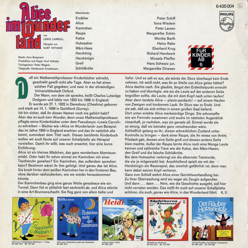 Hörspiel von Kurt Vethake nach dem Buch von Lewis Carroll