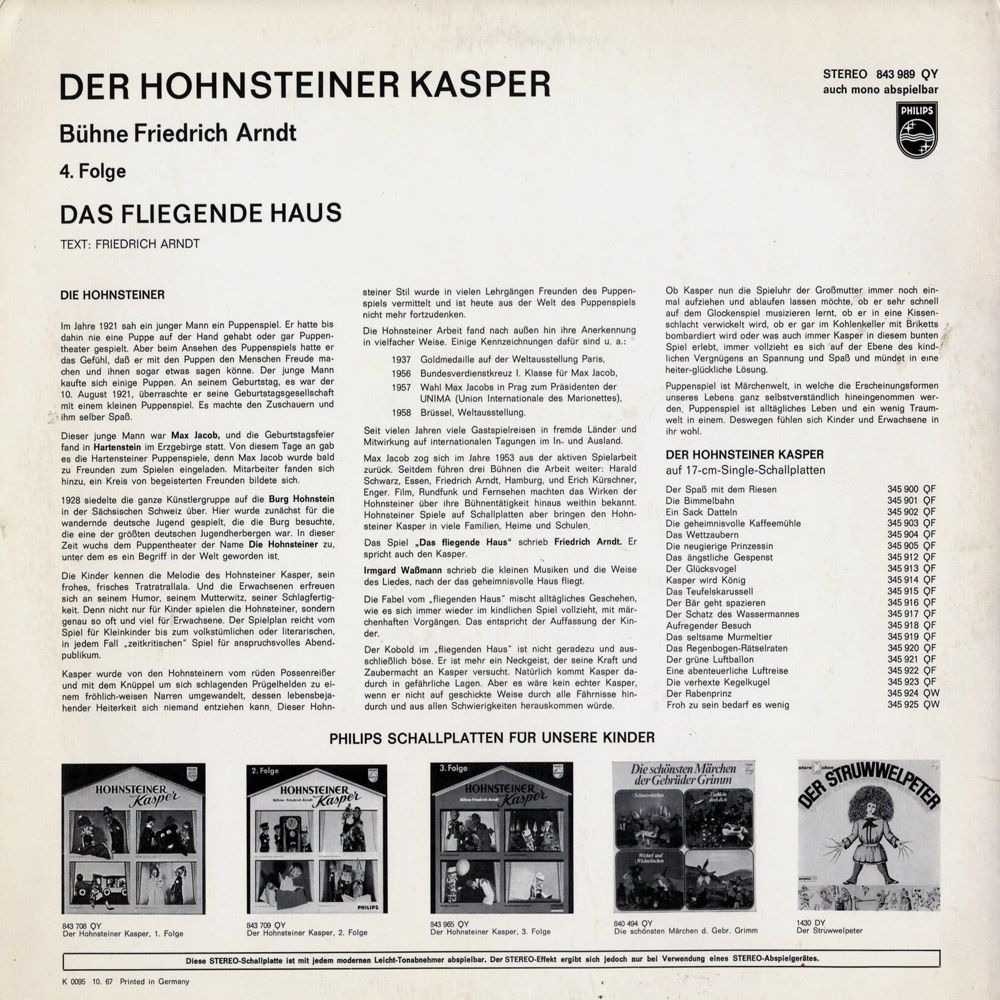Kasper-Spiele Bühne Friedrich Arndt, Zusammenstellung der Philips-Singles: Das fliegende Haus – Kasper in der Uhr – Der unsichtbare Hausherr – Der musikalische Zauberspruch – Der Kobold in der Tonne