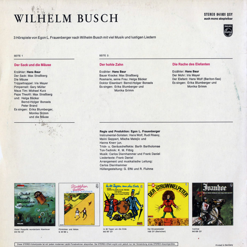 Hörspiele mit viel Musik und lustigen Liedern von Egon L. Frauenberger nach Wilhelm Busch