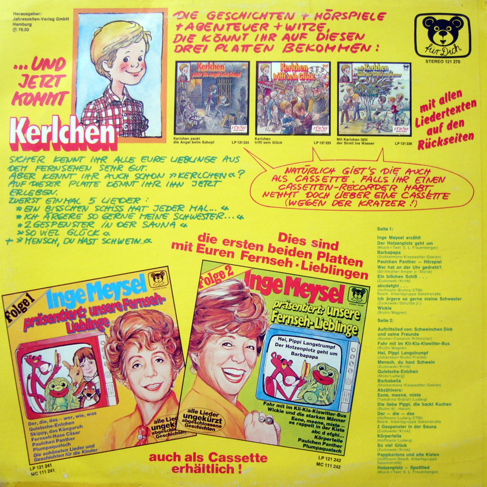 Das ganze war wohl der damalige Versuch, die Kinder mit bekannten Fernsehserien zu locken, dann aber ein paar 'Kerlchen' Lieder zu präsentieren um die Kinder zum Kauf der 'Kerlchen' Platten zu verführen.