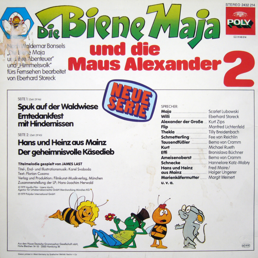 Das angegebene Produktionsjahr 1979 kann wirklich stimmen. Das japanische Trickfilmstudio Nippon Animation produzierte 1975 die erste Staffel mit den Folgen 1 - 52, wobei das ZDF die erste Folge am 9. Sept. 1976 ausstrahlte. Aufgrund des großen Erfolges wurde 1979 eine zweite Staffel mit den Folgen 53 - 104 produziert, wobei die 53. Folge im ZDF am 1. Sept. 1979 ausgestrahlt wurde (vgl. fernsehserien.de). Bei den auf dieser LP vorhandenen Folgen handelt es sich um die Nrn. 57 bis 60, die vom ZDF zwischen dem 23. Sept. 1979 und dem 20. Okt. 1979 gesendet wurden. Poly hat damit produktionstechnisch alle Möglichkeiten gehabt, diese LP auch 1979 auf den Markt zu bringen. Ich gehe sogar davon aus, da man bei Poly ja sicherlich zum Start der neuen Staffel Geld verdienen wollte.