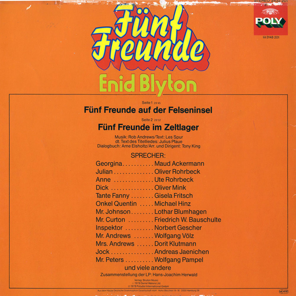 Ich bin bestimmt kein Freund von TV-Aufnahmen als Hörspiel aber die Fünf Freunde Platten von Poly kann ich immer wieder hören. Die Schnitte sind so perfekt das es einem erstmal garnicht auffält das einige Sachen aus der TV-Serie fehlen und auch ohne Erzähler kommt man bei den Storys ganz gut mit !