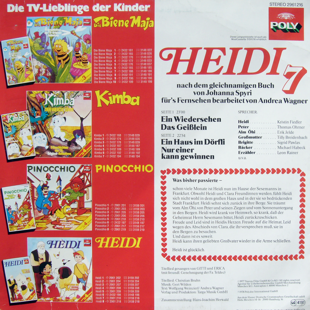 Zusammenstellung von Hans-Joachim Herwald nach dem gleichnamigen Buch von Johanna Spyri fürs Fernsehen bearbeitet von Andrea Wagner
