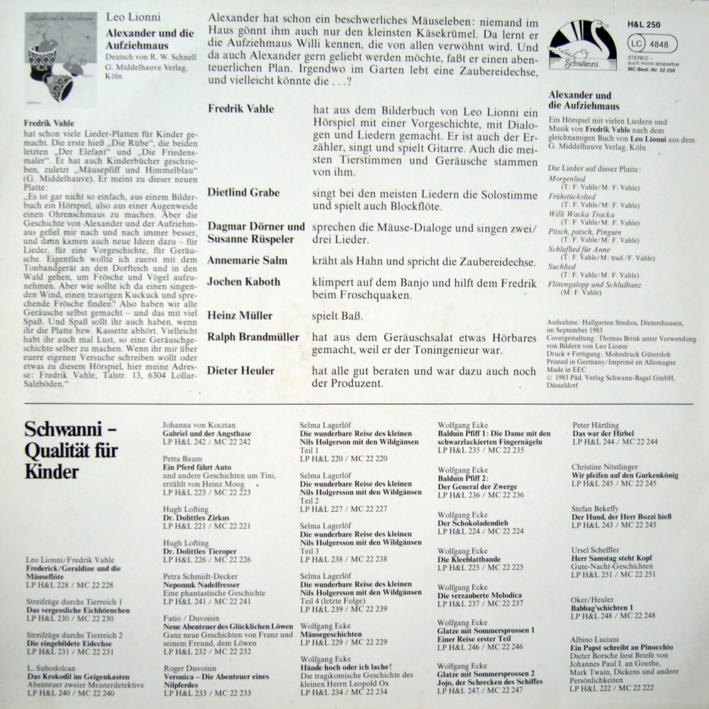 Alexander hat ein beschwerliches Mäuseleben:niemand im Haus gönnt ihm auch nur den kleinsten Käsekrümel.Da lernt er die Aufziehmaus Willi kennen, die von allen verwöhnt wird.Und da auch Alexander gern geliebt werden möchte, faßt er einen abenteuerlichen Plan.Irgendwo im Garten lebt eine Zaubereidechse, und vielleicht könnte die...?