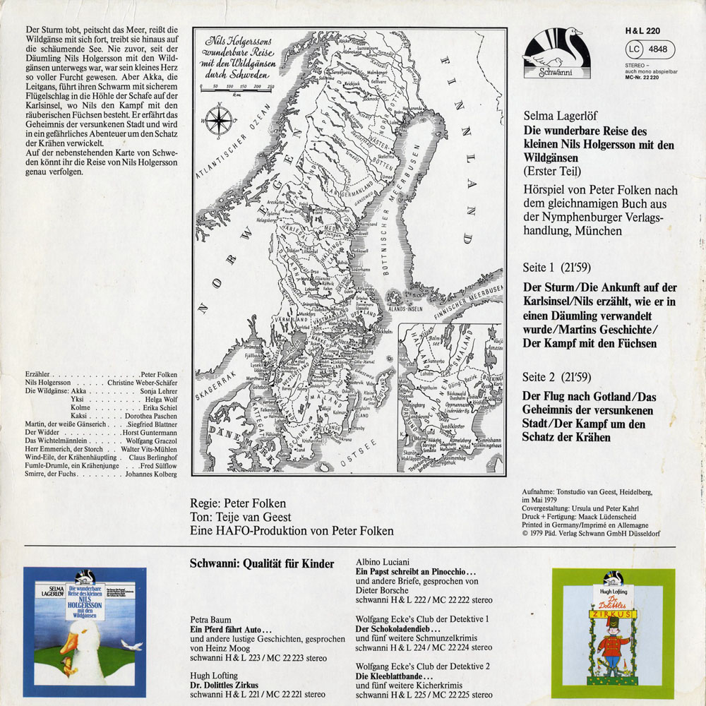 Ich hab mir dieses 4teilige Hörspiel früher in der Bibliothek ausgeliehen und fand es richtig gut. Ich mochte die Hörspiele von Peter Folken sowieso sehr gerne. Die Geschichte lässt sich Zeit und beschränkt sich nicht nur auf die Reise mit den Wildgänsen, sondern bezieht auch einige der Märchen und Sagen ein, die man unterwegs erzählt bekommt. Eine tollte Bearbeitung des Buches!
