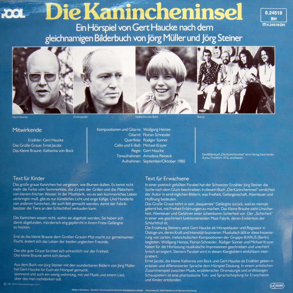 Das große graue Kaninchen hat vergessen, wie Blumen duften. Es kennt nicht mehr die Farbe von Sonnenklee, das Zirpen der Grillen und das Plätschern von klaren frischen Wasser. In der Mastfabrik, wo es sein kümmerliches Leben verbringen muß, gibt es nur künstliches Licht und enge Käfige. Und Hunderte von anderen Kaninchen, die auch fett gemacht werden, damit der Fabrikbesitzer die Tiere im Schlachthof verkaufen kann. Die Kaninchen wissen nicht, wohin sie abgeholt werden. Siehaben sich damit abgefunden, mörderisch eng in ihrem Fress-Gefängnis zu hocken. Erst als das kleine braune dem Großen Grauen Mut macht zur gemeinsamen Flucht, ändert sich das Leben der beiden ungleichen Freunde. Das alte gute Graue fürchtet sich schrecklich vor der Freiheit. Das kleine Braune sehnt sich danach.