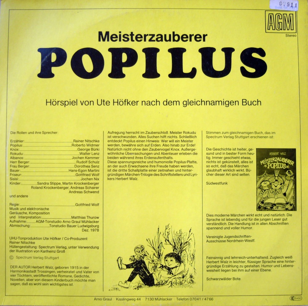 Diese spannungsreiche und humorvolle Popilus-Platte, an der auch Erwachsene ihre Freude haben werden, ist die dritte Schallplatte einer zeitnahen und hintergründigen Märchen-Trilogie des Schriftstellers und Lyrikers Herbert Walz.