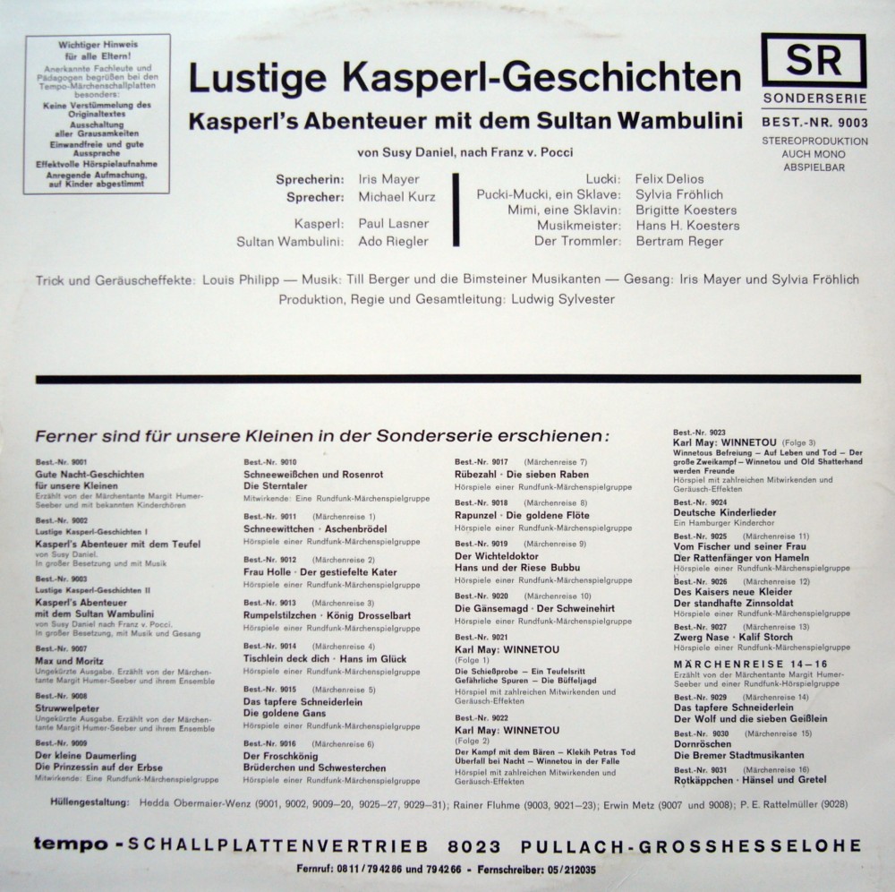 Ich habe dieses Hörspiel in meiner Kindheit gemocht. Heute frage ich mich warum?Den besten Auftritt hatte Hans Kasperl bei Larifari. Finde den Sprecher ganz Lustig. Ansonsten bitte keine Neuauflage. Dann aber mit dem Aufdruck: Veraltetes Weltbild!
