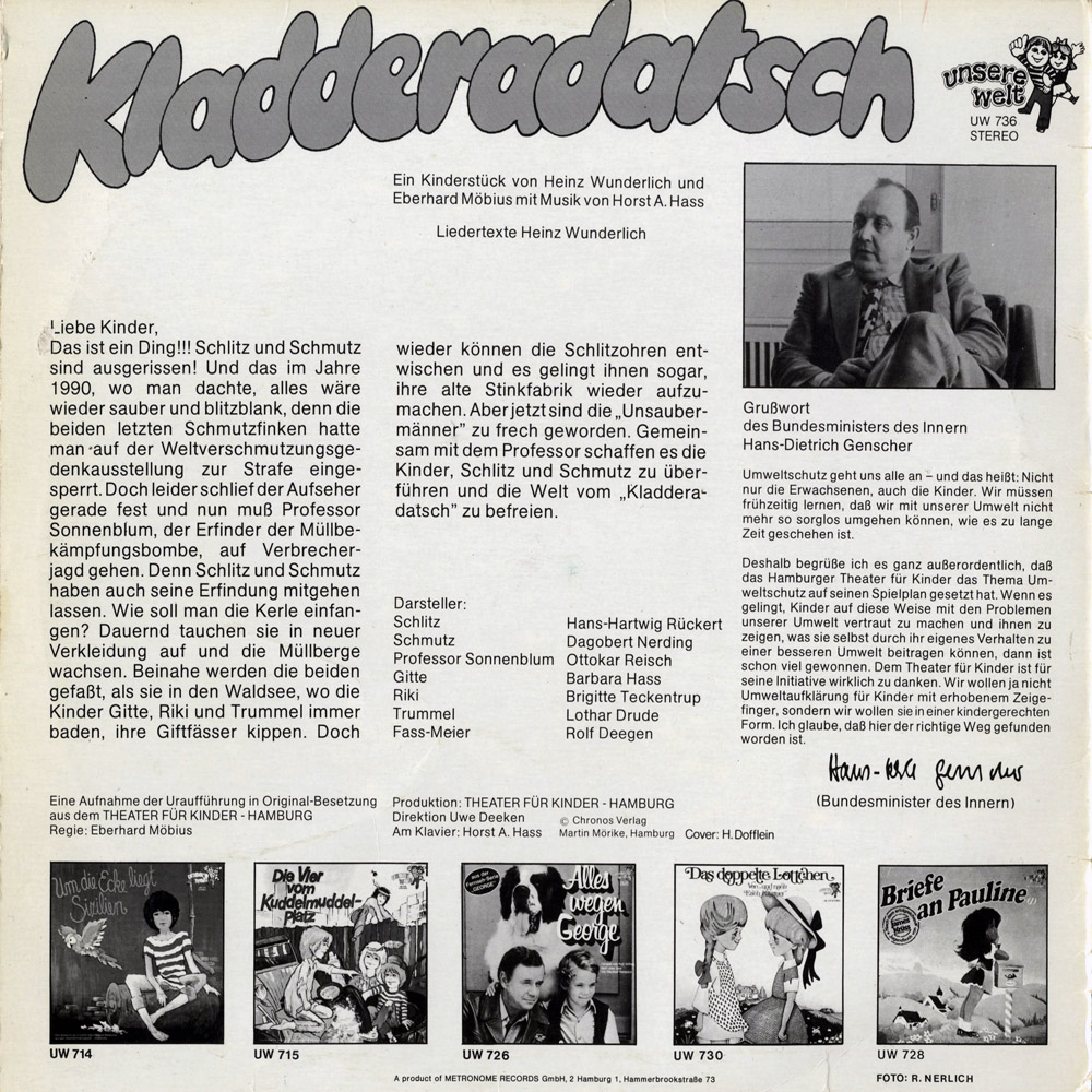 Ein Kinderstück von Heinz Wunderlich und Eberhard Möbius mit Musik von Horst A. Hass.