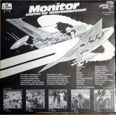 Hörspiel nach den Büchern "MONITOR startet zur Unterwasserstadt" und "Neuer Kurs für MONITOR" von Rolf Ulrici, erschienen im Franz Schneider Verlag. Die Bücher sind dann später noch einmal im Fischer Verlag unter den Titeln "Start zur Unterwasserstadt" und "Auf neuem Kurs" herausgekommen.