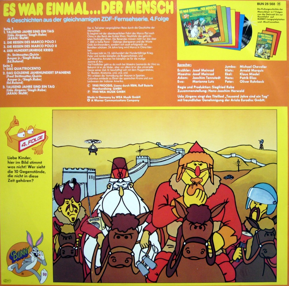 Diese LP beginnt bei Marco Polo, erzählt von Dsingis Kahn, von Leonardo Davin Ci und endet bei den Spaniern in Südamerika.
