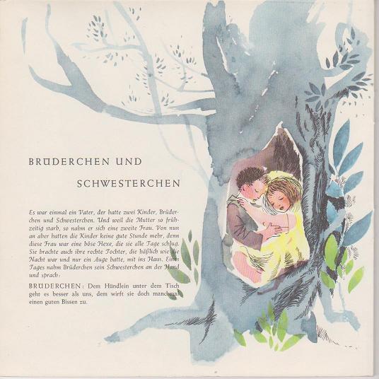 Es war einmal ein Vater, der hatte zwei Kinder, Brüderchen und Schwesterchen. Und weil die Mutter so frühzeitig starb, so nahm er sich eine zweite Frau. Von nun an aber hatten die Kinder keine gute Stunde mehr, denn diese Frau war eine böse Hexe, die sie alle Tage schlug. Sie brachte auch ihre rechte Tochter, die hässlich wie die Nacht war und nur ein Auge hatte, mit ins Haus. Eines Tages nahm Brüderchen sein Schwesterchen an der Hand und sprach ...