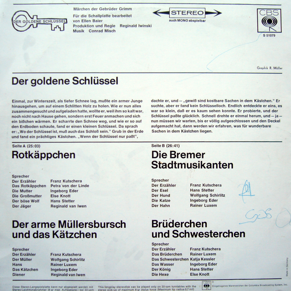 Der goldene Schlüssel - Folge 1 : Rotkäppchen Brüderchen und Schwesterchen Der arme Müllersbursch und das Kätzchen Die Bremer Stadtmusikanten