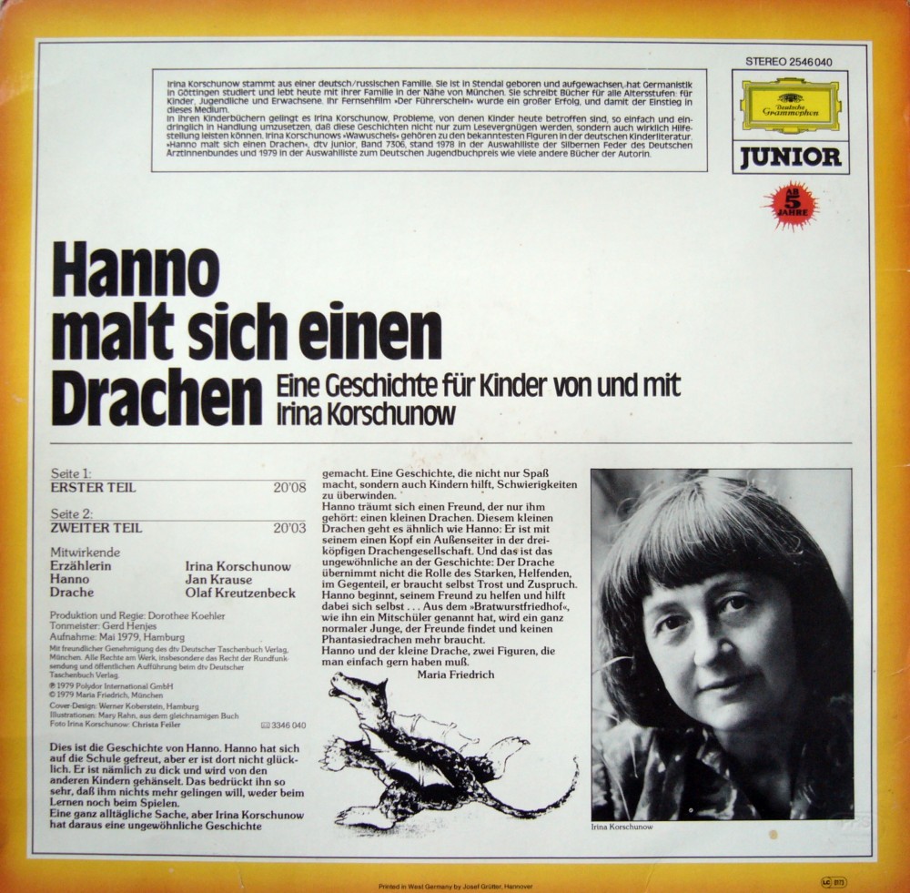 Hanno hat sich sehr auf die Schule gefreut, aber dann hänseln ihn alle, weil er zu dick ist. Das bedrückt ihn so, dass ihm nichts mehr gelingen will. Auf dem Heimweg von der Schule setzt er sich auf eine Bank und malt mit dem Stöckchen in den Sand. Da formt sich ein kleiner Drache und wird lebendig. Er will bei Hanno bleiben...