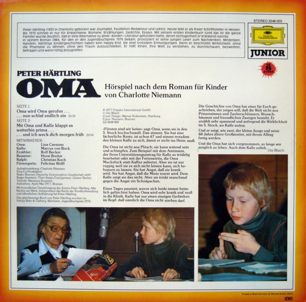 Die Geschichte von Oma hat einer für Euch geschrieben, der zeigen will, daß die Welt nicht aus Prinzessinnen und Zauberschlössern, Wunschbäumen und freundlichen Zwergen besteht. Er erzählt sehr spannend und aufregend die Wirklichkeit im 5. Stock, wo Kalle wohnt.