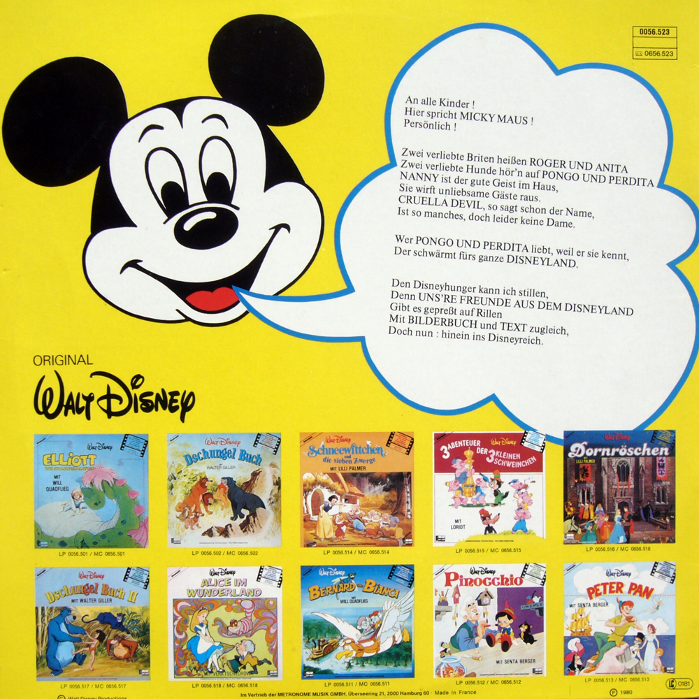 Zum anderen ist der Film offenar in der ersten Generation der Disney-Hörspiel-LPs im Gegensatz zu vielen anderen nicht in ein Hörspiel umgesetzt worden (wie auch 'Dornröschen').